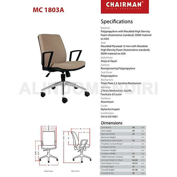 Kursi ManagerBahan Oscar/FabricHydraulicSynchroArmrestAluminium FootbaseUkuran H.98-108 x W.45 x D.45 cm