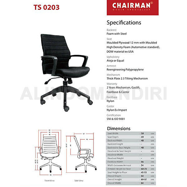 Kursi ManagerBahan Oscar/FabricHydraulicTilting ControlNylon FootbaseArmrestUkuran H.95-103 x W.50 x D.49 cm